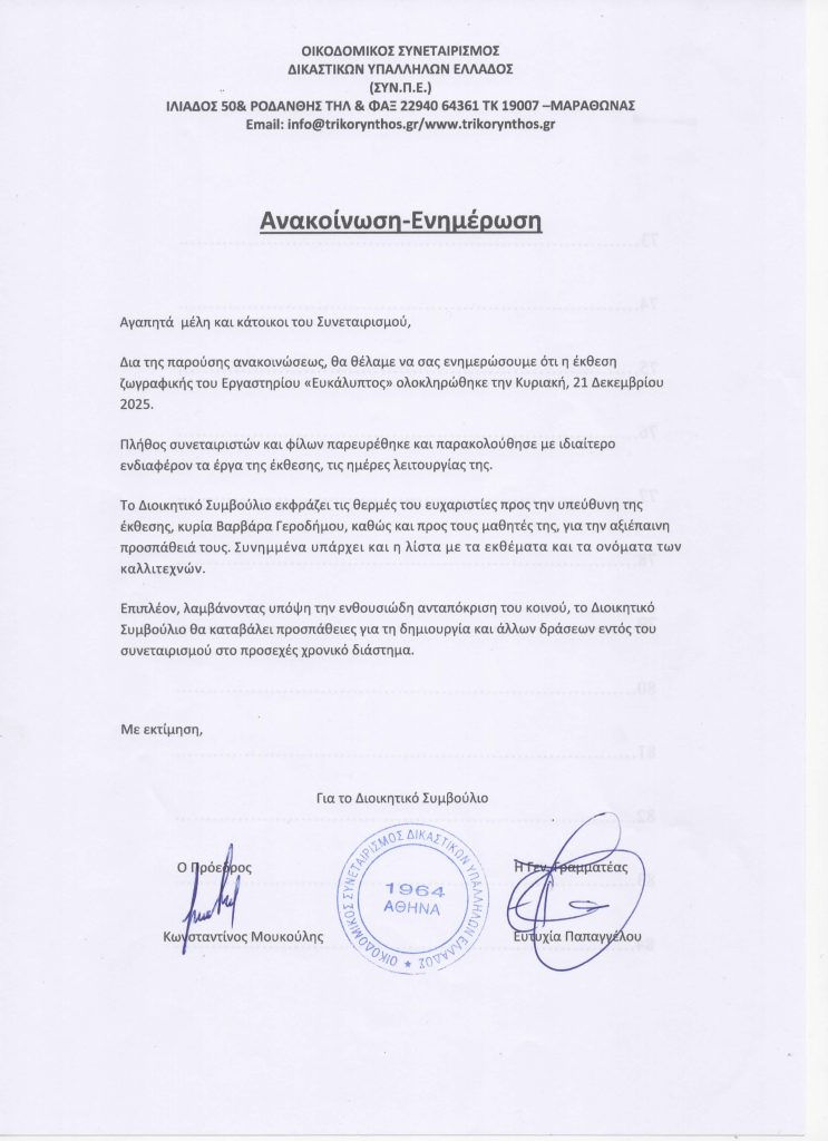 • ΕΝΗΜΕΡΩΣΗ ΠΡΟΣ ΤΑ ΜΕΛΗ 18/03/2025